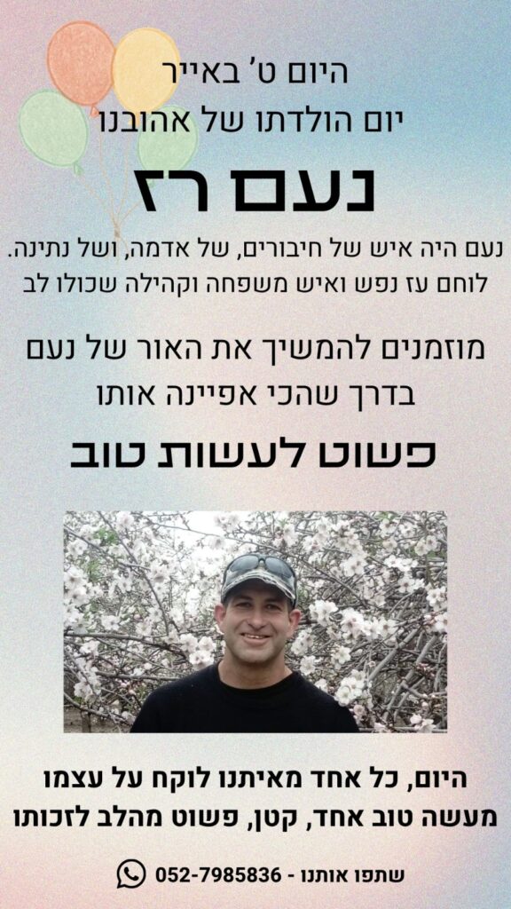 נעם נגע בכל מי שהכיר אותו. חסרונו כואב בכולנו. ממש ביומיום.